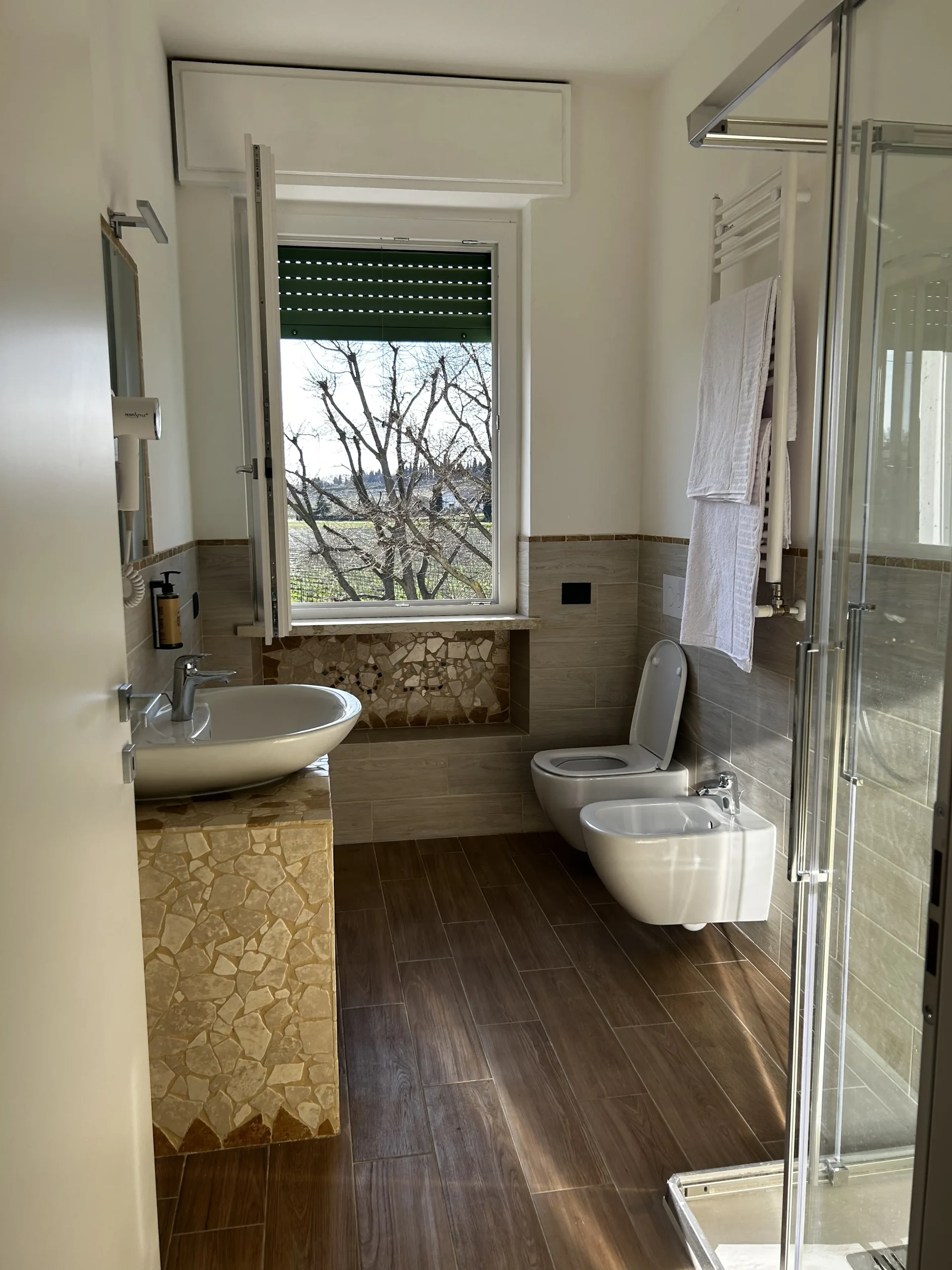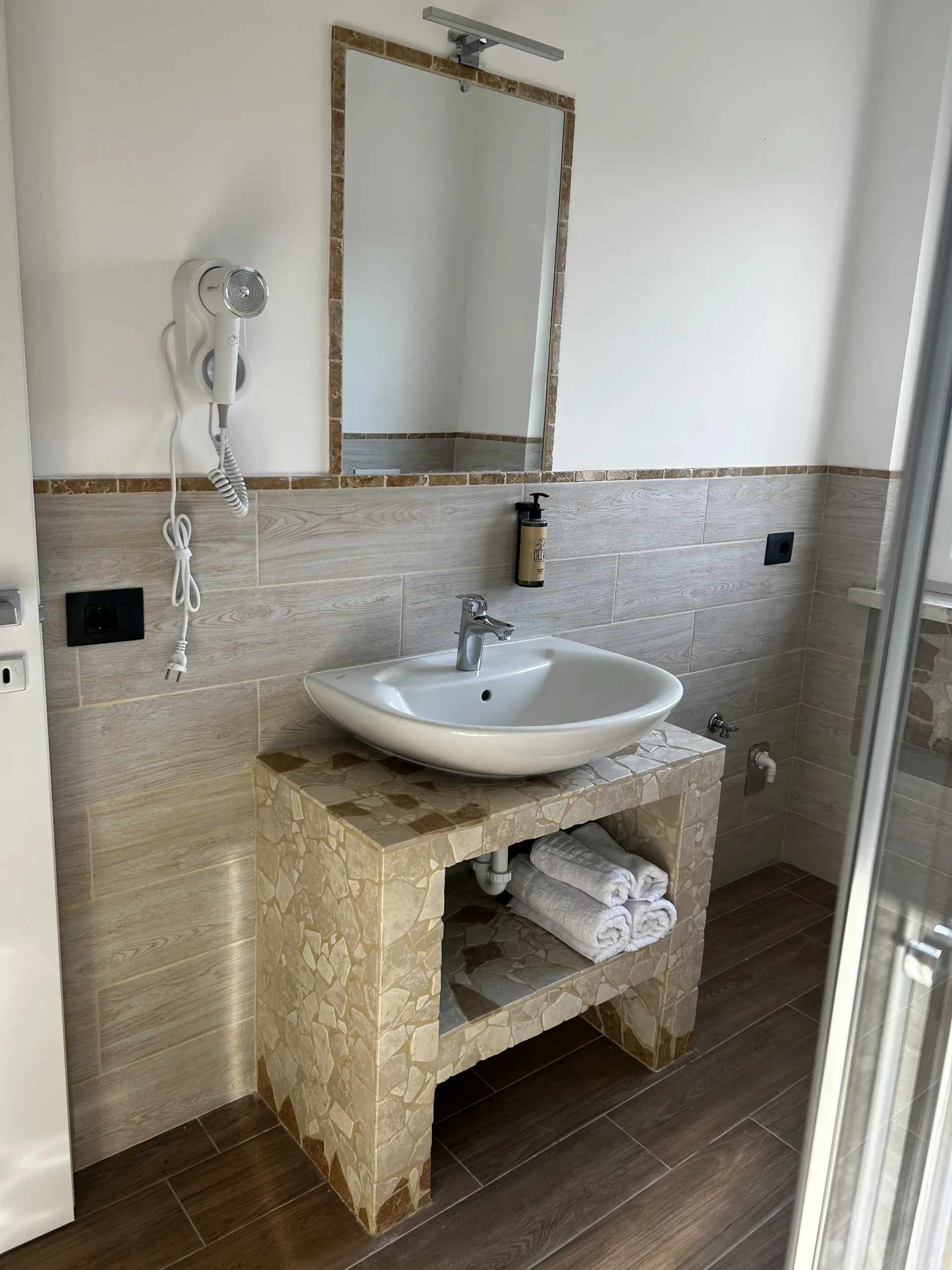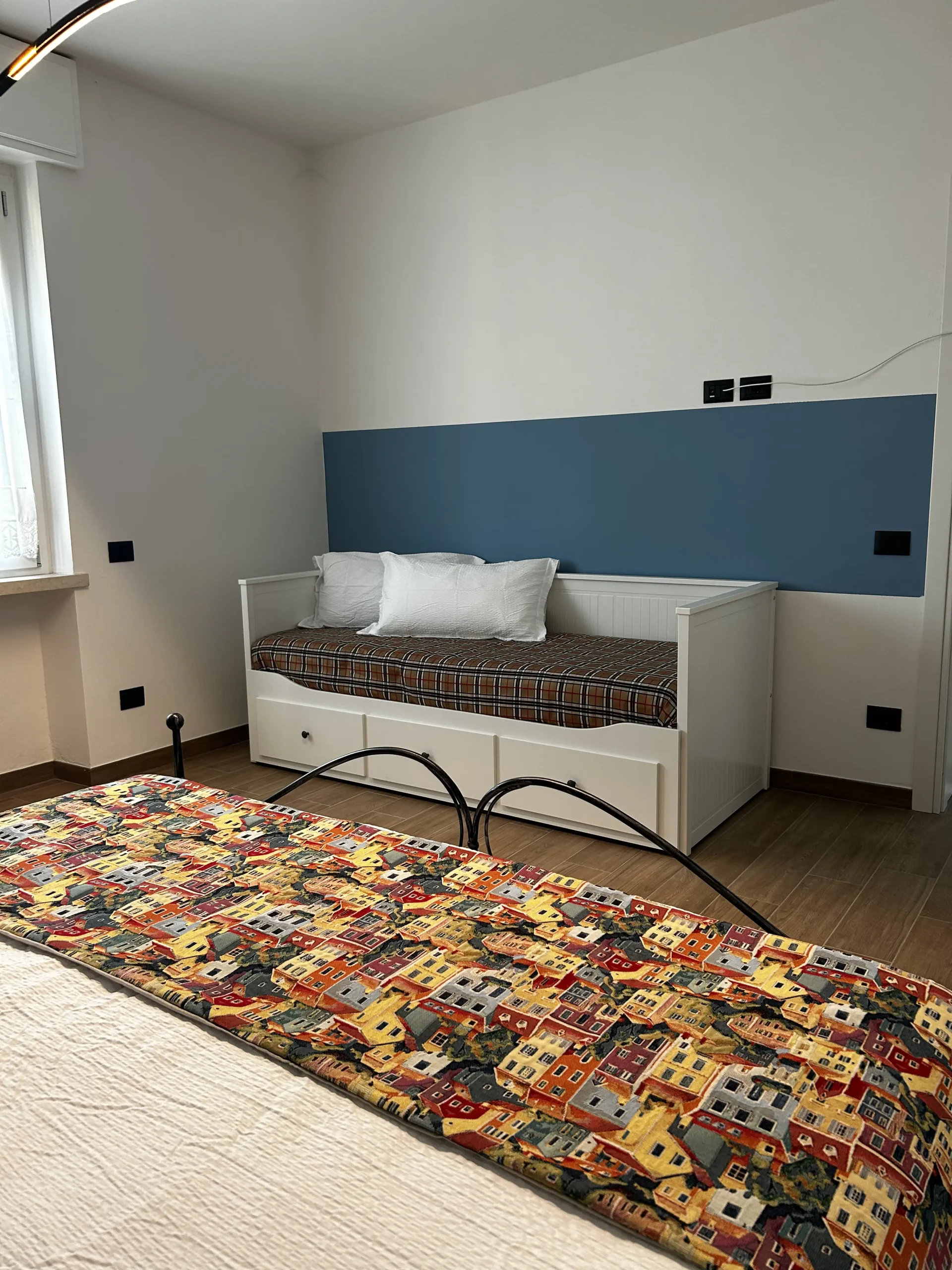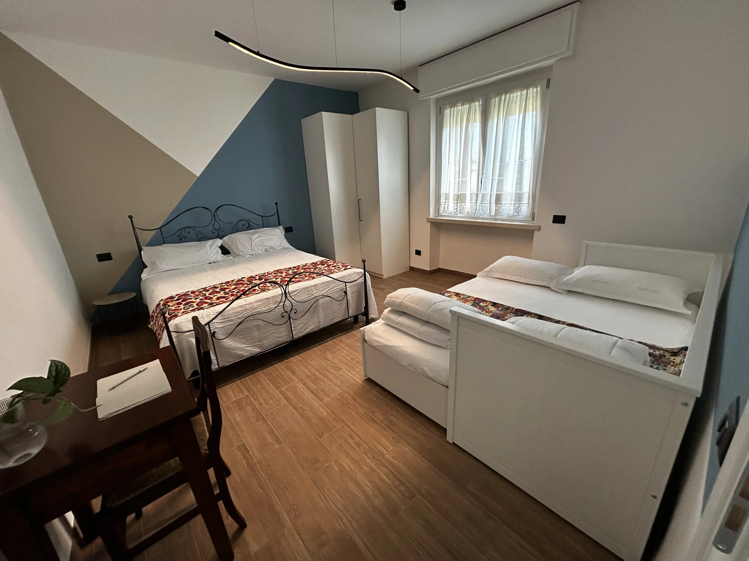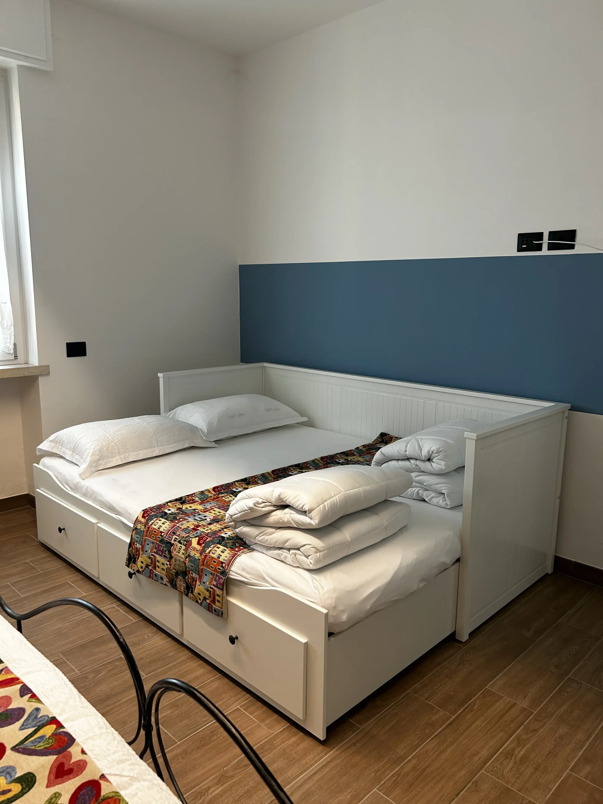 Das Zimmer verfügt über ein Doppelbett und ein Kinderbett, das bei Bedarf in ein zweites Doppelbett umgewandelt werden kann und sich Ihren Bedürfnissen anpasst. Ein komplettes Badezimmer mit Dusche und Handtüchern sowie ein Balkon, auf dem Sie einen Moment an der frischen Luft genießen können, runden die Wohnung ab.