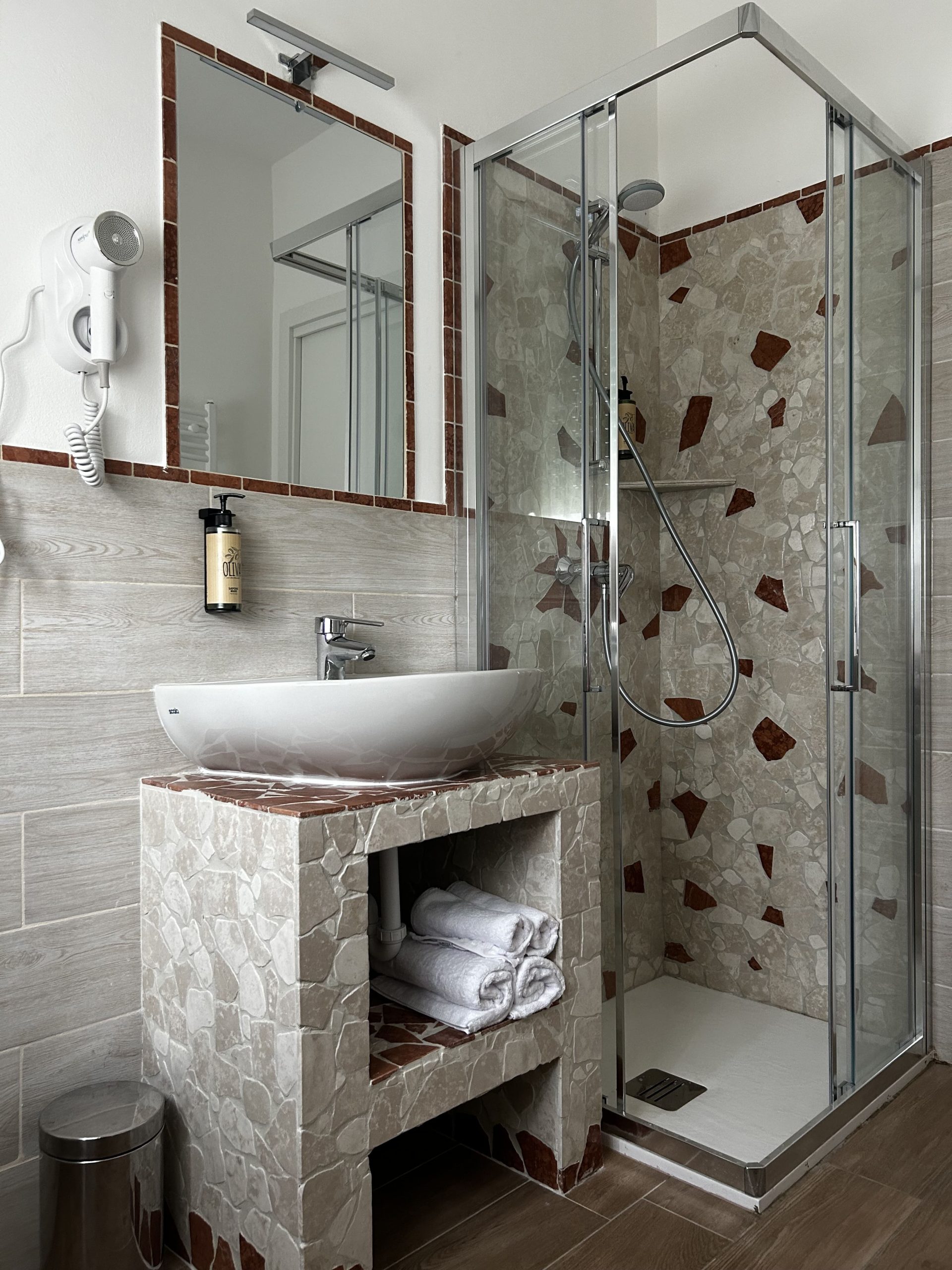Der Raum ist so optimiert, dass er Ihnen alles bietet, was Sie brauchen: ein eigenes Bad mit Dusche und Handtüchern, ein bequemes Bett zum Entspannen, eine Küchenzeile, in der Sie Ihre eigenen Mahlzeiten zubereiten können, und eine warme und gemütliche Atmosphäre.